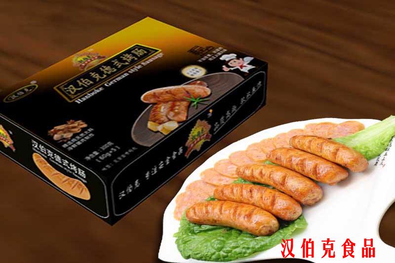 漢伯克精心研制德式烤腸有愛(ài),有味,有吉祥,純肉含量90%以上,選料精細,做工考究,薰烤味純正,色鮮潤澤,同時(shí)有它特殊的香辛料風(fēng)味;食用時(shí)可以直接切片,也可蒸或炒,是佐餐,筵宴,旅游,饋贈的首選佳品。